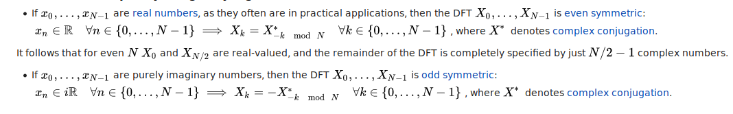 For input data x n 1 , n 2 , … , n d consisting of real numbers, the DFT outputs have a conjugate symmetry similar to the one-dimensional case above: