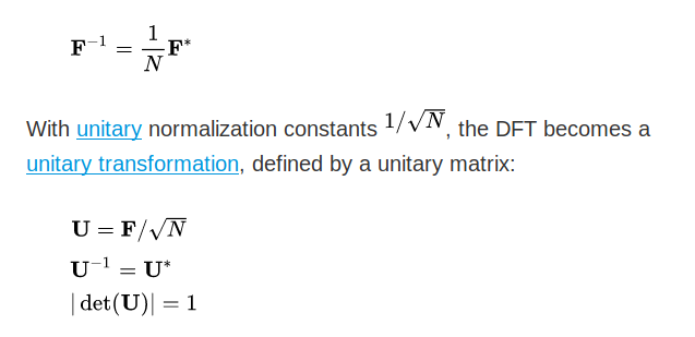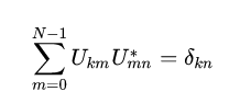 where δ k k ′ is the Kronecker delta. (In the last step, the summation is trivial if k = k ′ k=k’, where it is 1+1+⋅⋅⋅=N, and otherwise is a geometric series that can be explicitly summed to obtain zero.) This orthogonality condition can be used to derive the formula for the IDFT from the definition of the DFT, and is equivalent to the unitarity property below.