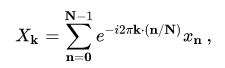 which is also NN-periodic. In the domain n ∈ [0, N − 1], this is the inverse transform of Eq.1. In this interpretation, each X is a complex number that encodes both amplitude and phase of a complex sinusoidal component ( e i 2 π k n / N )