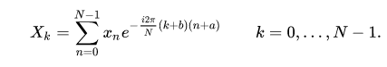 Another interesting choice is a = b = − ( N − 1 ) / 2 a=b=-(N-1)/2, which is called the centered DFT (or CDFT). The centered DFT has the useful property that, when N is a multiple of four, all four of its eigenvalues (see above) have equal multiplicities (Rubio and Santhanam, 2005)