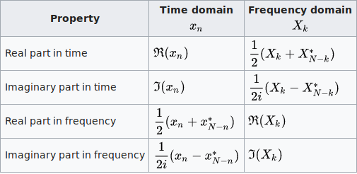 This table shows some mathematical operations on x n in the time domain and the corresponding effects on its DFT X k in the frequency domain.