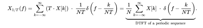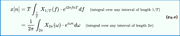 However, noting that X1/T(f) is periodic, all the necessary information is contained within any interval of length 1/T. In both Eq.1 and Eq.2, the summations over n are a Fourier series, with coefficients x[n]. The standard formulas for the Fourier coefficients are also the inverse transforms:
