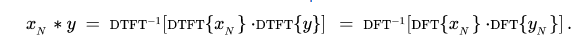 An important special case is the circular convolution of sequences x and y defined by x N ∗ y where x N is a periodic summation. The discrete-frequency nature of DTFT{xN} “selects” only discrete values from the continuous function DTFT{y}, which results in considerable simplification of the inverse transform. As shown at Convolution theorem#Functions of discrete variable sequences: